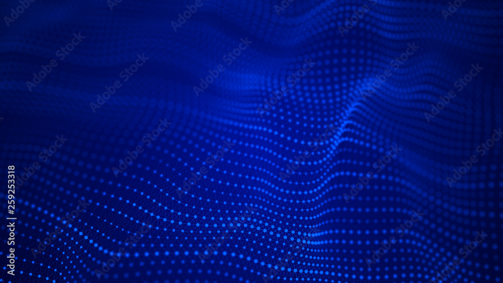 Wave 3d. Wave of particles. Abstract background with a futuristic wave. Big data visualization. Technology concept. 3d landscape. 3d rendering.