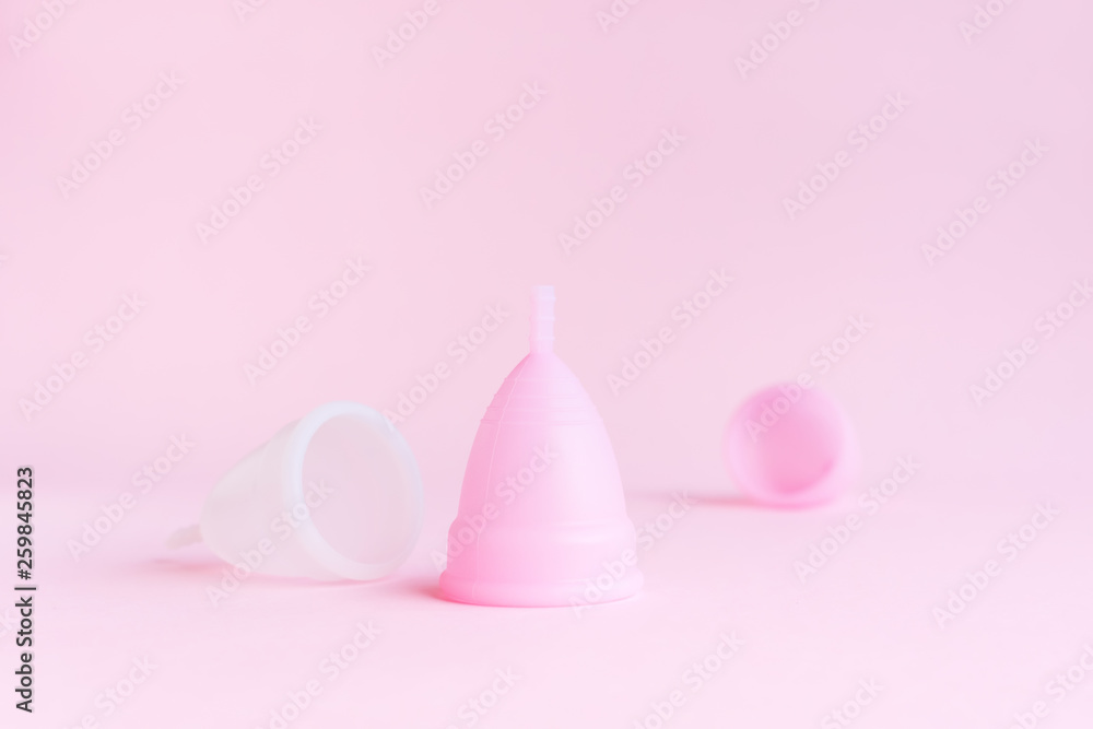 Menstrual cup on pink background. Alternative product