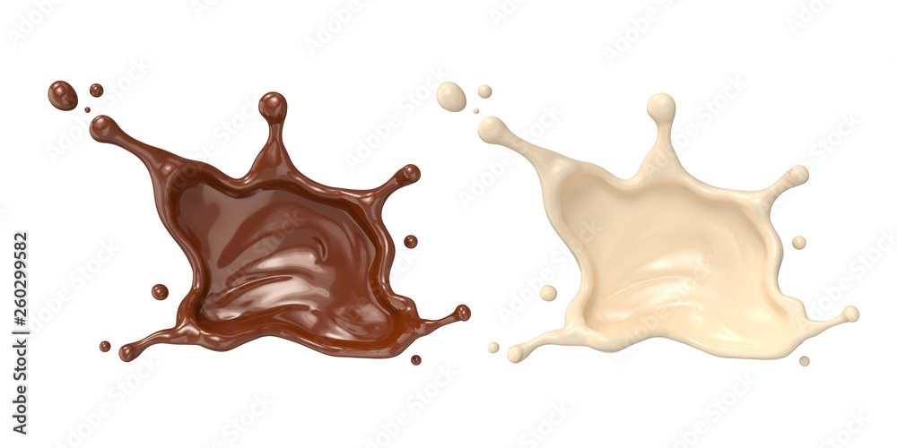 Chocolate milk or cocoa splash isolated on white background, 3d rendering Include clipping path.