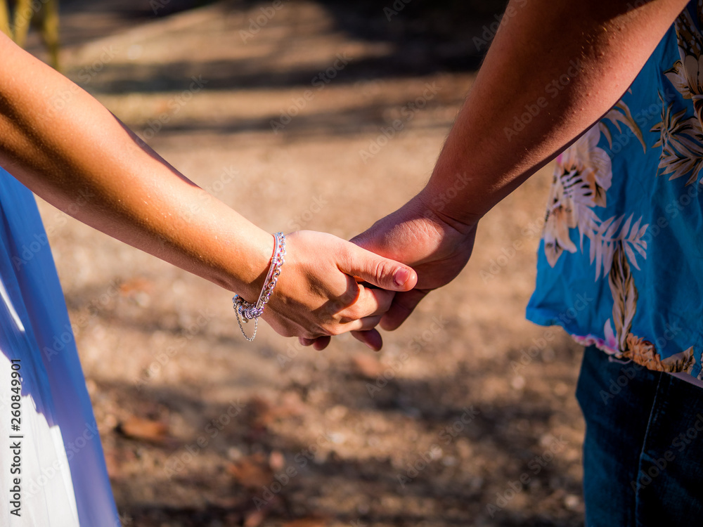 Couple holding hands each other outdoors