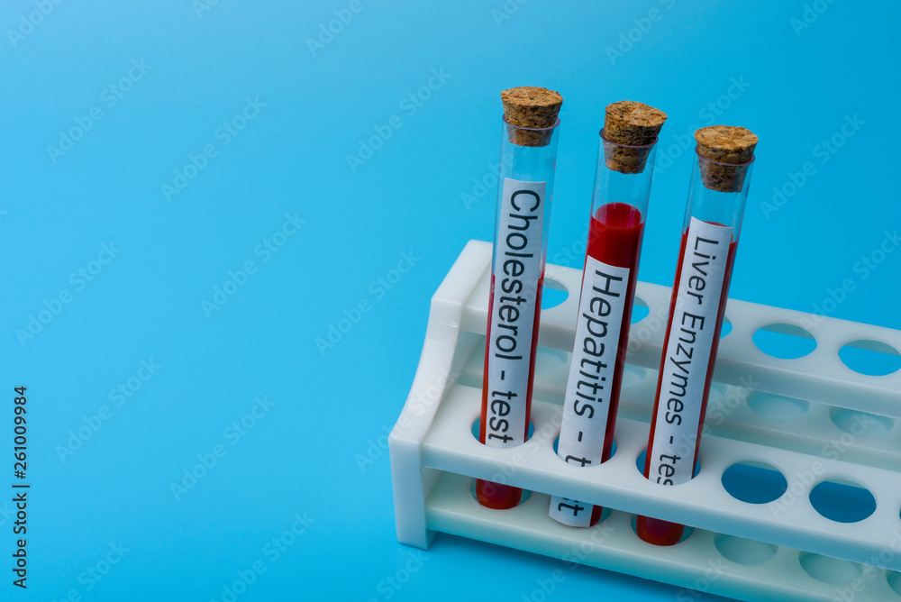 Cholesterol test Hepatitis Test and liver Enzyme Test, in Vitro.