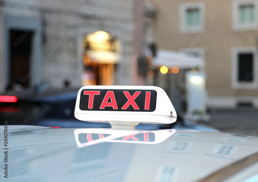 TAXI text above the car for transporting people into the city