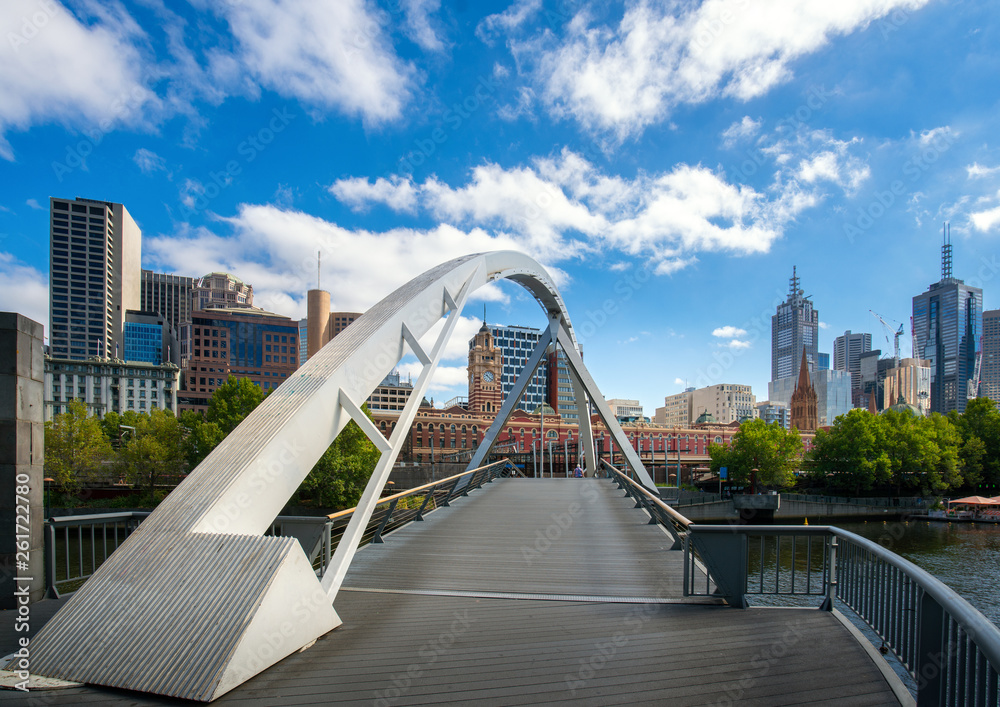 Melbourne city with blue sky with walk way to train station and city, Australia