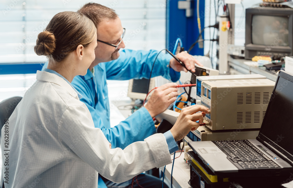 Team of electronic engineers testing a product prototype