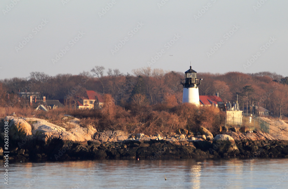 Ten Pound Island Lighthouse on Ten Pound Island, Gloucester, Massachusetts, at sunset