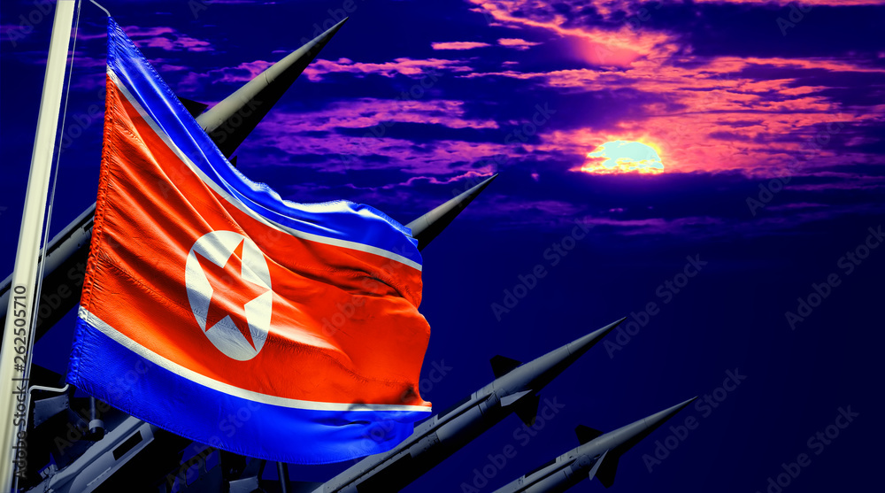 Nuclear missiles and North Korea flag in background