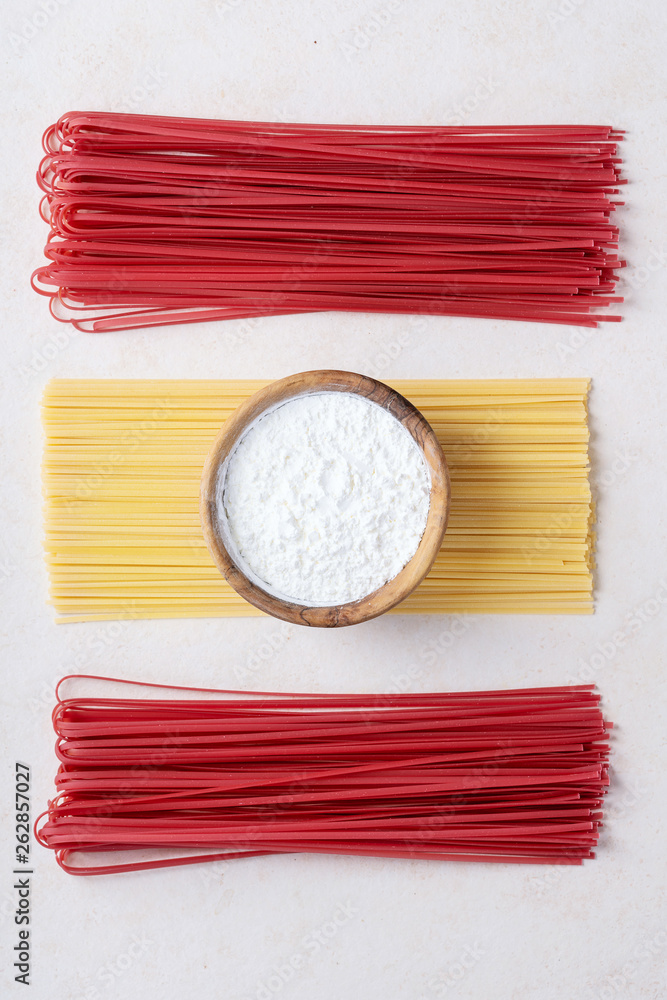 Raw ingredients for cooking pasta