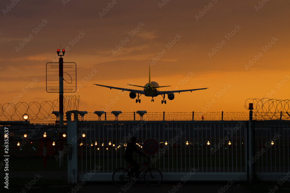 Landendes Fluzgzeug am Flughafen