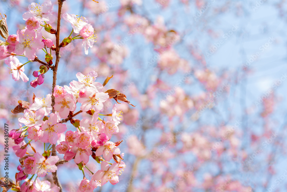 Spring flowering of sakura. Background for a festive wedding greeting card and wedding invitation.