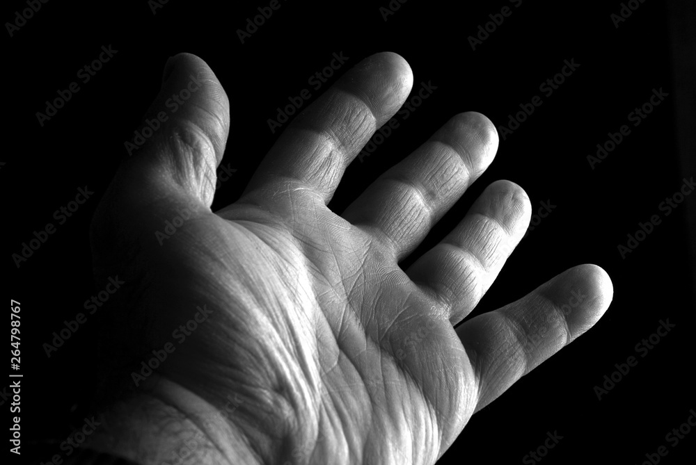 Hand of a man in darkness. Female hand.