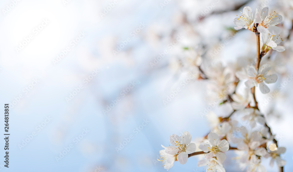 Spring flowering of apricot tree. Background for a festive wedding card and wedding invitation.
