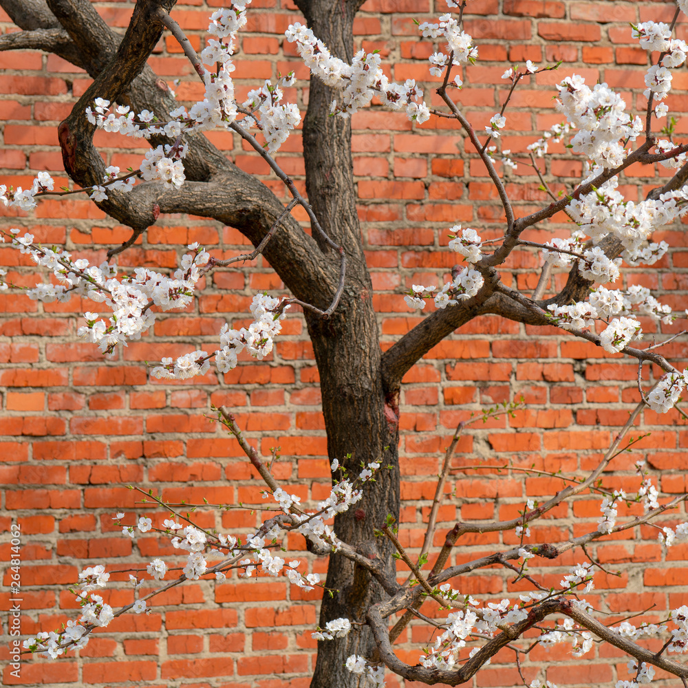 Spring flowering of apricot tree. Background for a festive wedding card and wedding invitation.