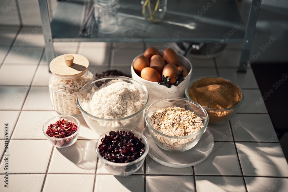 Large pieces of red meat in a freezer with a big quantity of frozen ice and snow