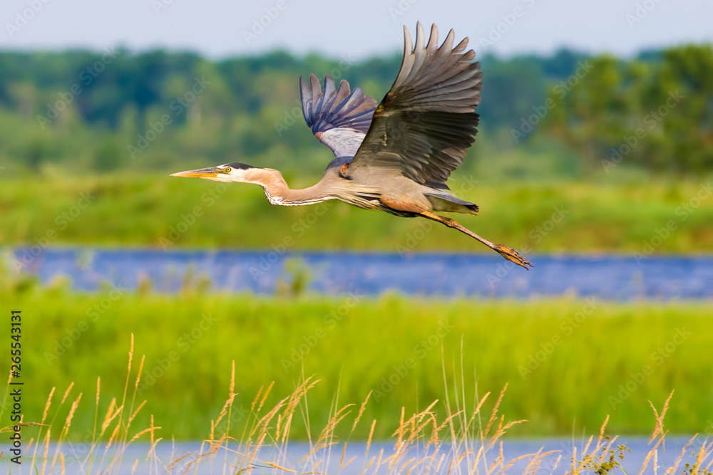 Great blue heron - flying in lakes and wetlands in the Crex Meadows Wildlife Area