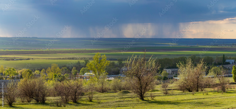 The steppe before the rain. Storm front over the fields. Element captures the outskirts of the city.