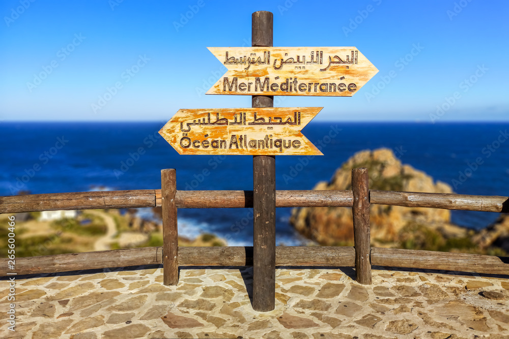 Junction between Atlantic Ocean and Mediterranean sea near Tangier, Morocco