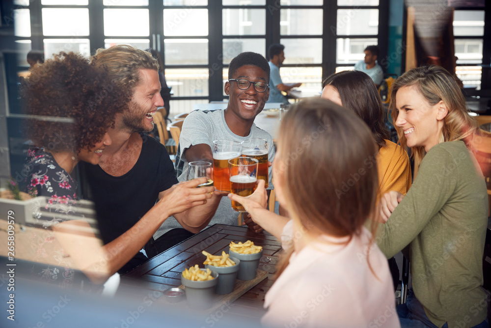 Group Of Young Friends Meeting For Drinks And Food Making A Toast In Restaurant