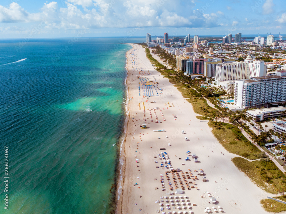 aerial drone view from above at the beach of Miami
