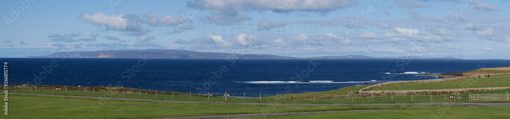 A view across from Mey in Caithness across the Pentland Firth to the island of Hoy, part of the Orkney Archipelago in Scotland, UK