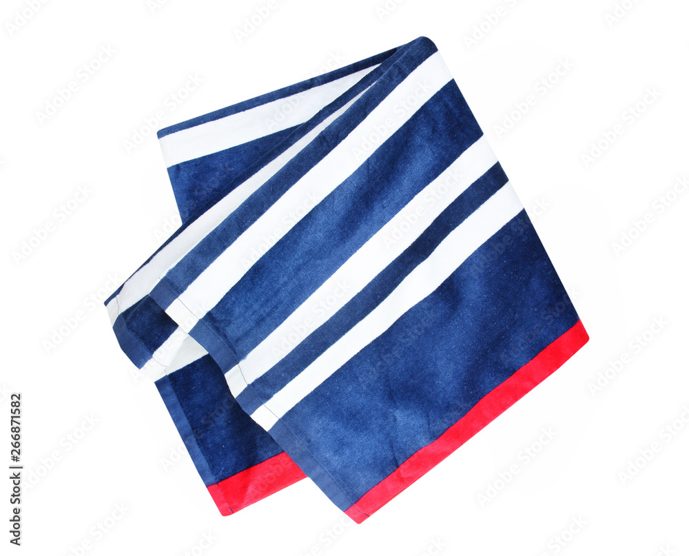 Blue stripped folded beach towel isolated.