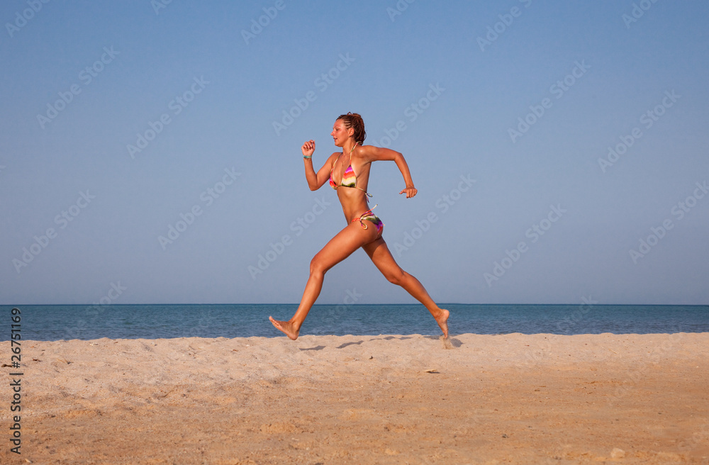 beautiful young woman running