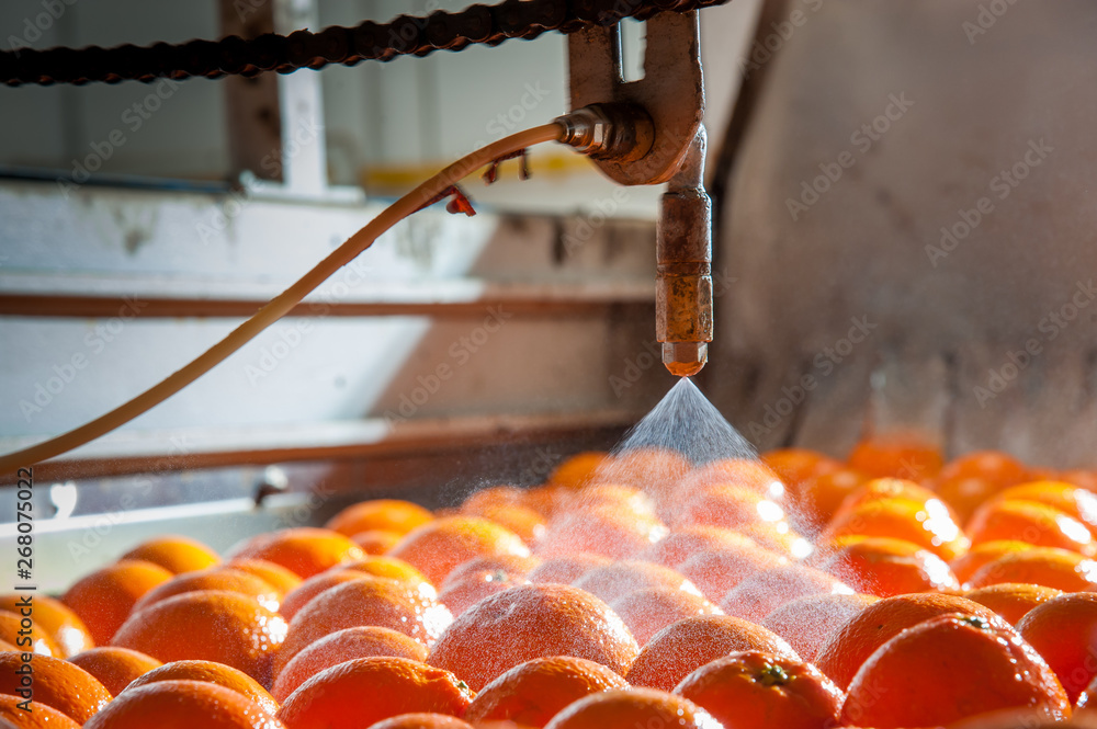 Tarocco oranges in the carriage during the waxing process