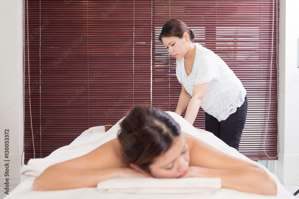 Beauty, decorative cosmetics bottles. Peach and purple colors background, flat lay, top view, minimalistic pop-art style