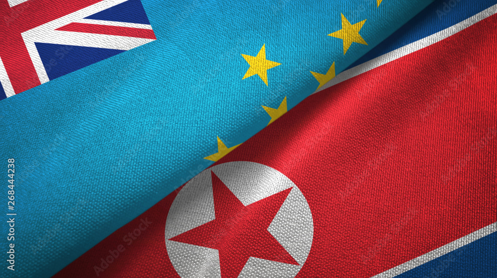 Tuvalu and North Korea two flags textile cloth, fabric texture