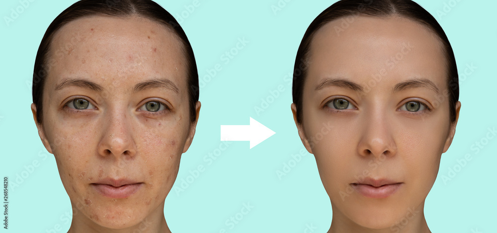 Face of a young girl after a cosmetic procedure of chemical peeling close-up. The concept before and after.