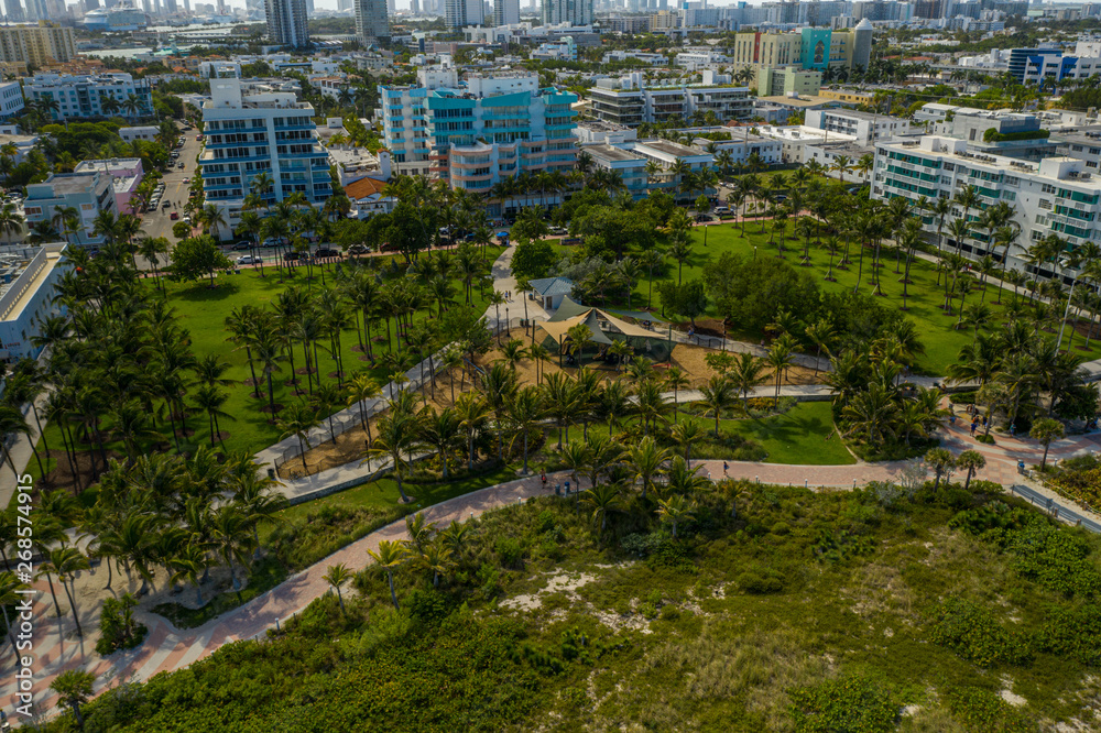 Aerial park with palm trees Miami Beach FL USA