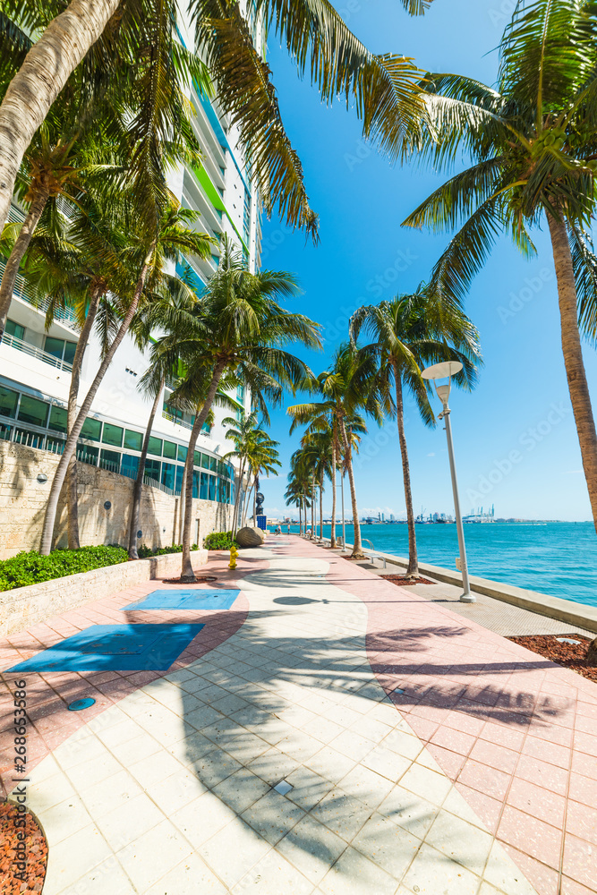 Beautiful promenade in Miami Riverwalk on a sunny day
