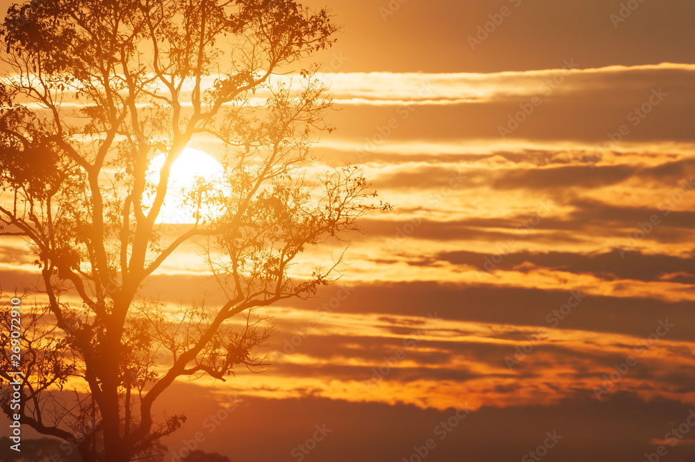 Glowing sun rising over a wilderness.