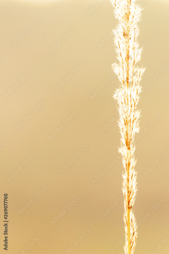 Soft sunrise shines on reed flower is in bloom.