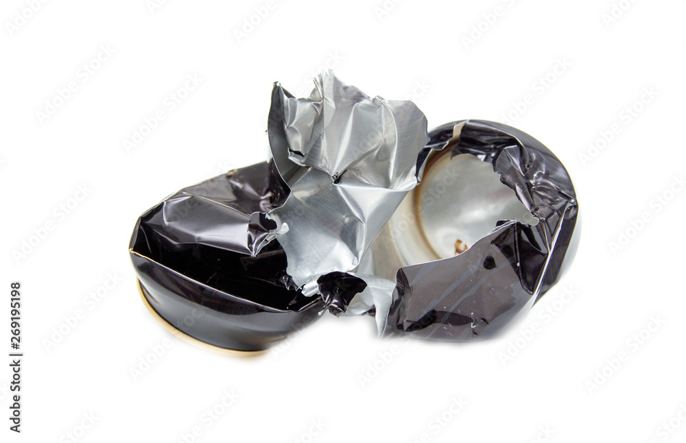 Aluminum recycling old cans isolated on white background.