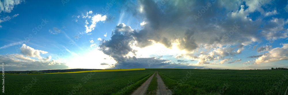 scenic panorama view of natural landscape under a cloudy sky