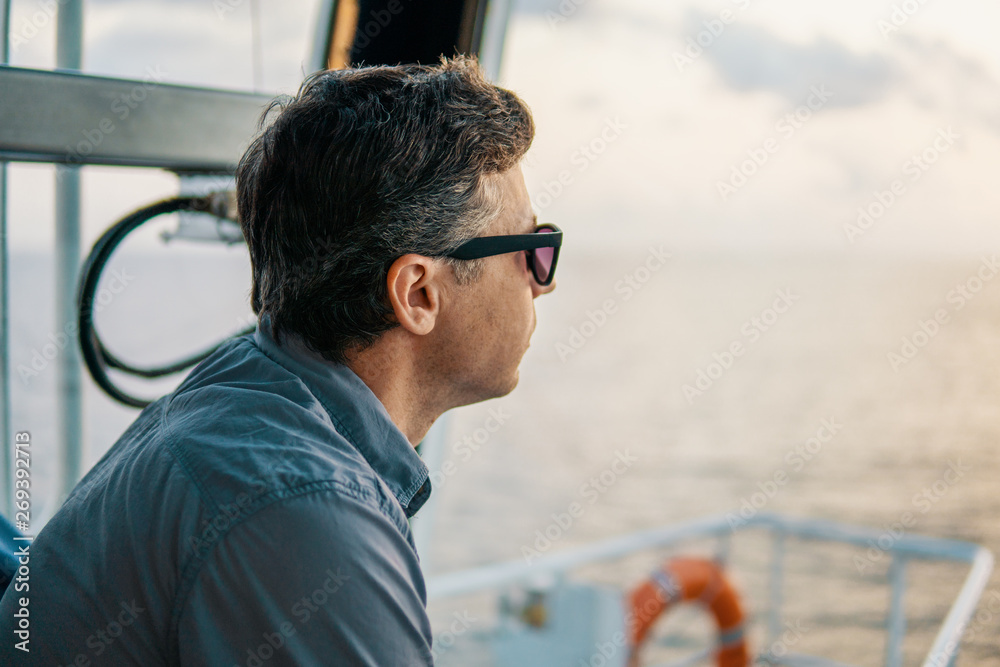 Marine navigational officer or chief mate on navigation watch on ship or vessel