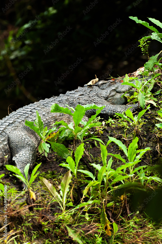 The Siamese crocodile taking a nap on the log.