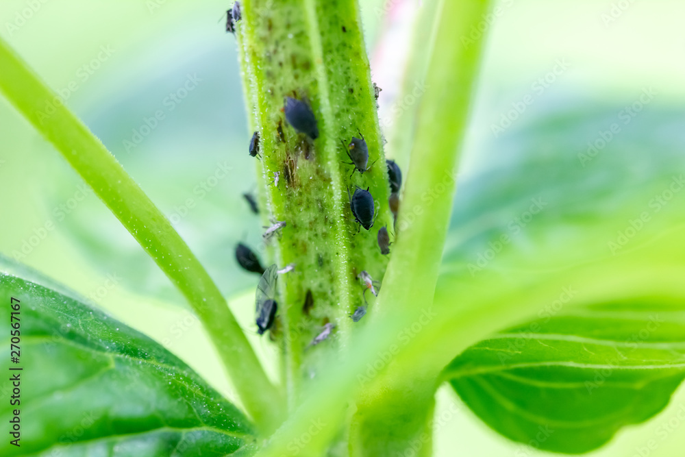schwarze Blattläuse auf einer grünen Pflanze