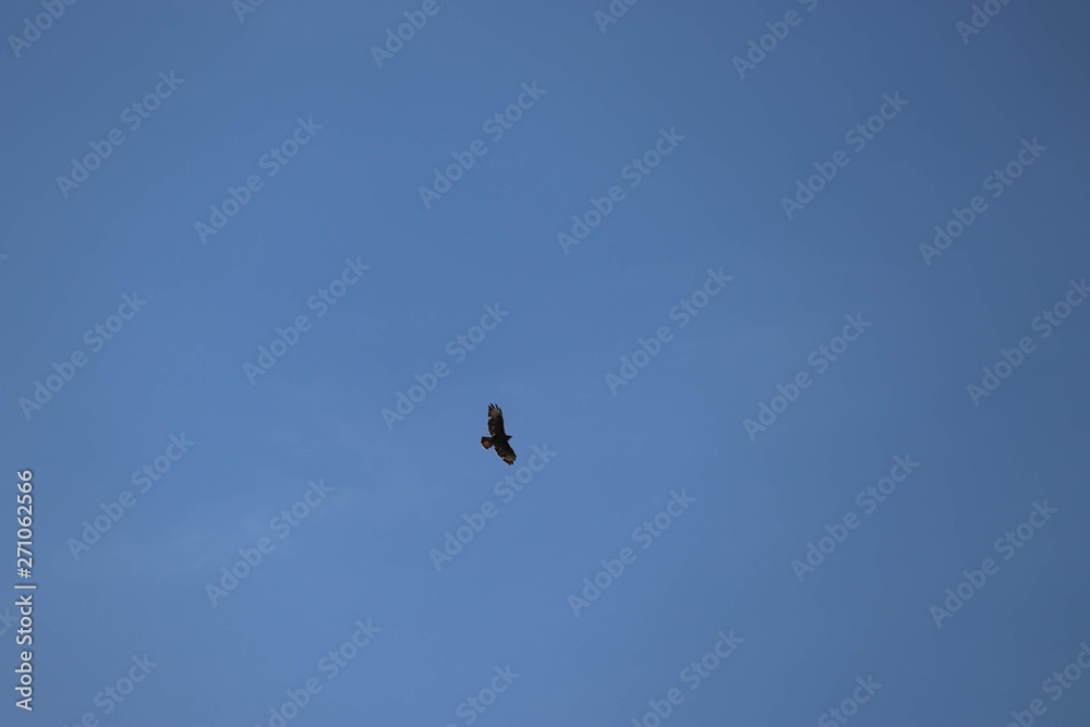 buzzard flying in clear sky