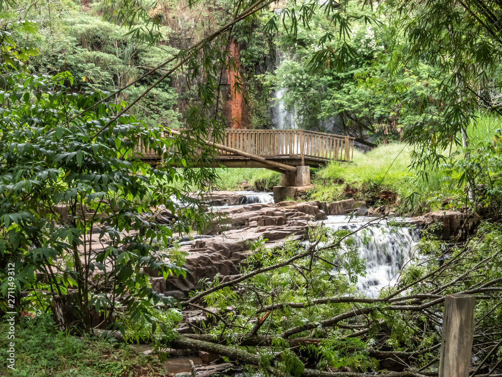 waterfall in Jacare Pepira River in Saltos public Park, in Brotas city