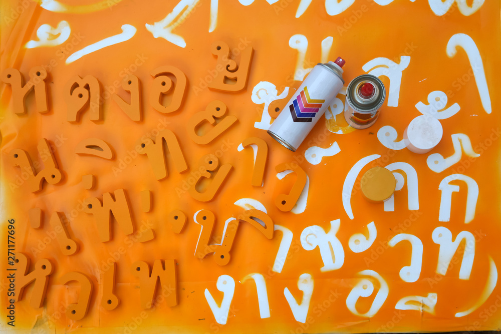 Thai Alphabets with Spray Paint , Pieces of letters were cut.