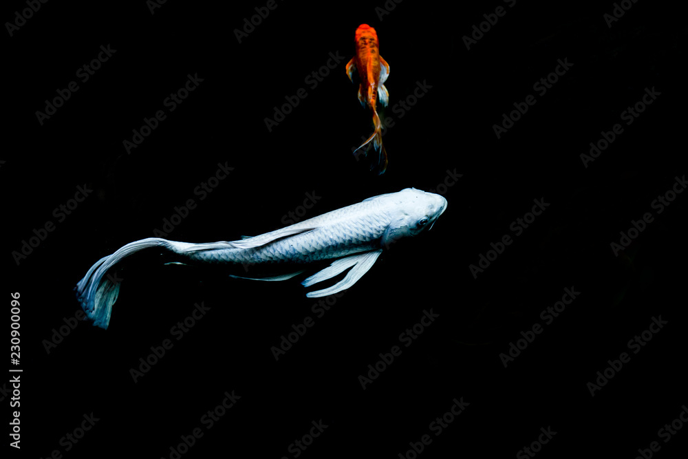 Blue lake overlooking the pier and the mast of summer yachts on the background of the Alpine mountains