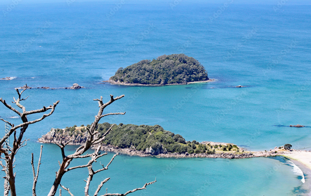 The turquoise sea that surrounds Mount Maunganui in North Island, New Zealand.