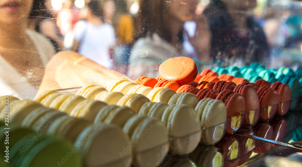 Colorful Macaroons exposed for sale