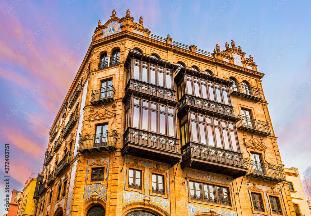 Immeuble typique andalous à Séville en Andalousie, Espagne