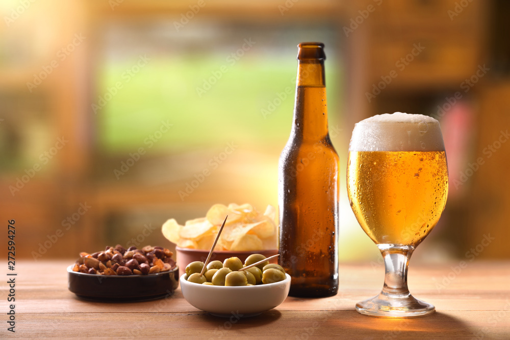 Appetizer table and tv background to watch match