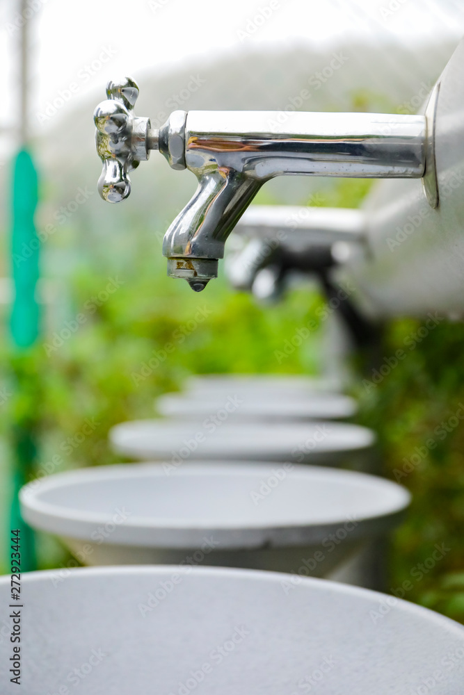 Faucet with dripping water. Tap closeup with dripping water-drop.