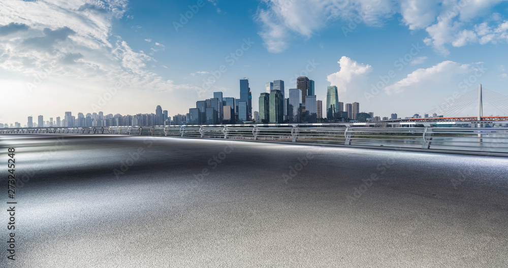 Panoramic skyline and modern business office buildings with empty road,empty concrete square floor