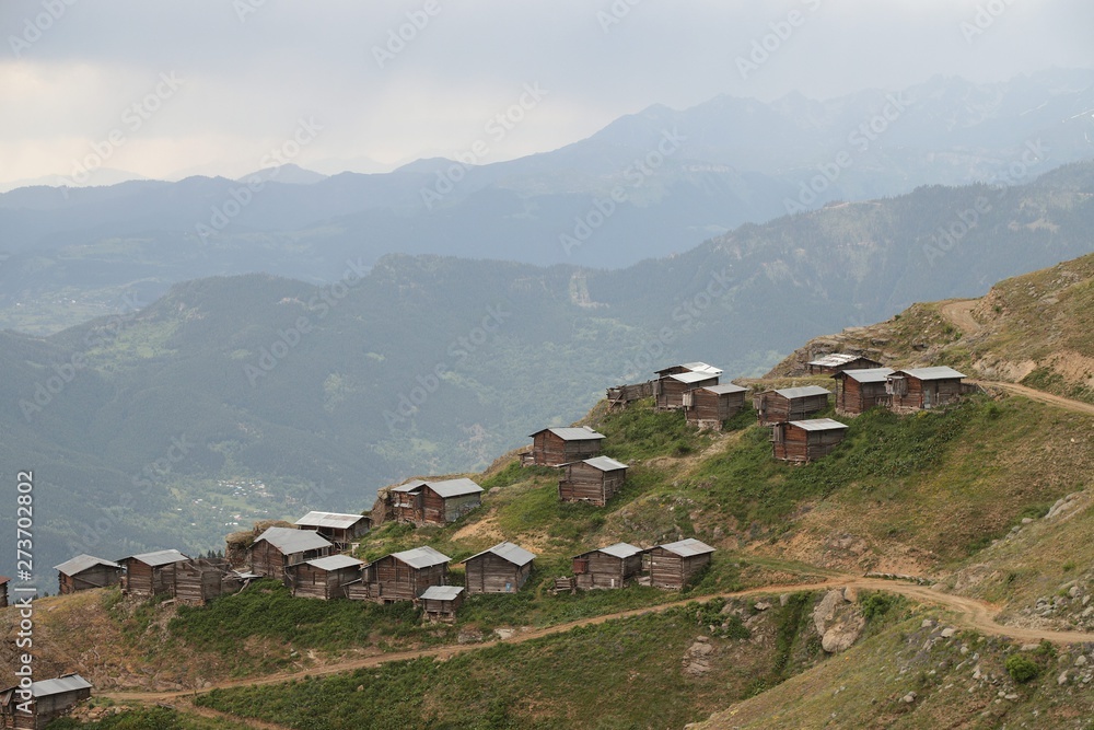 beautiful dark blue mountain landscape with fog and forest.artvin/turkey