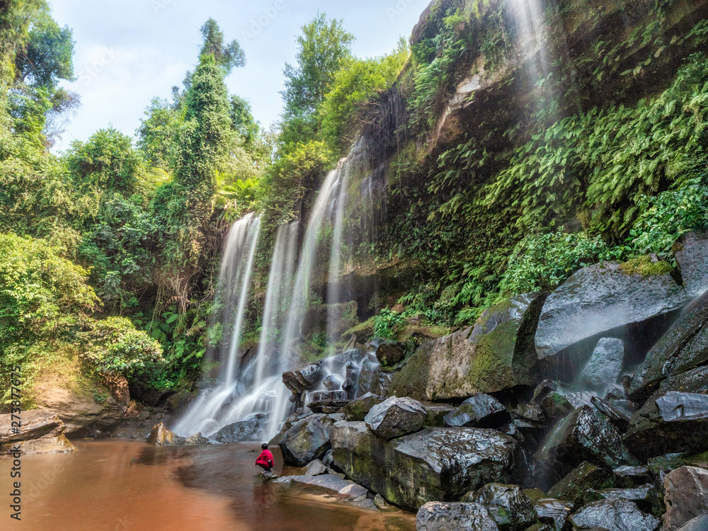 Cascade dans la jungle dans le parc national de Phnom Kulen au Cambodge